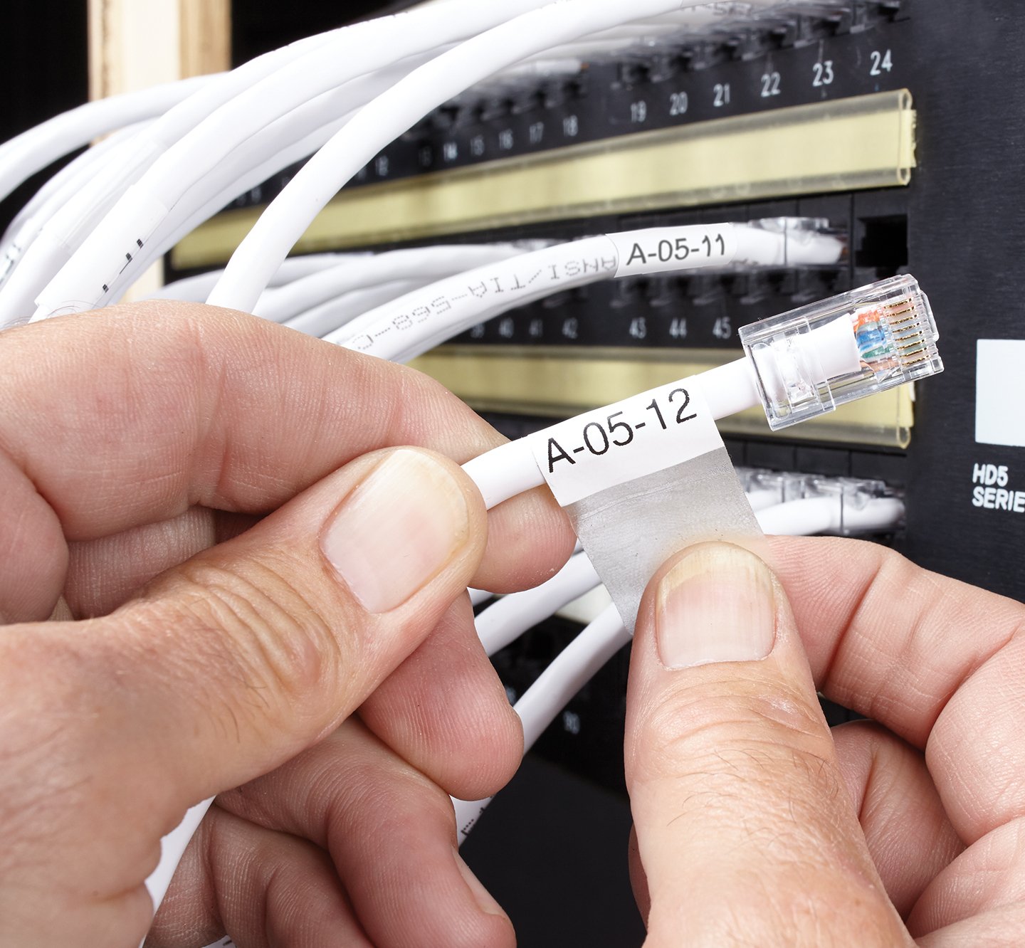 Wrap Around Cable Labels £ 41.95 TCE Wrap Around Cable Labels are ideal for use in the Electrical, Energy, Data & Communications markets, enabling quick and simple cable identification, saving time and money. Suitable for network cables such as Cat5 and Cat6 RJ45, they are easily applied being self adhesive and wrap-around with no need for overlaminating.
